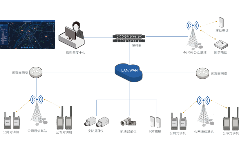 北峰ProChat物聯云系統支持通過有線網絡、無線網絡接入、管理、控制公網對講機、移動執法儀、多模智能對講機等終端設公網對講機公專對講機備,可以不受地域、時間限制,打破傳統對講機通信距離短、網絡不穩定等瓶頸,實現全國范圍內無距通信,隨時隨地實現互聯應用,大幅降低建設成本與運營成本。